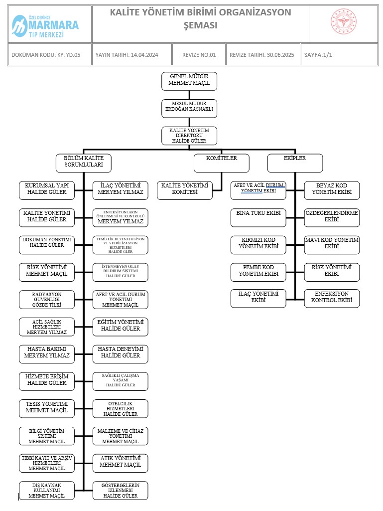 1. Sağlık Bakanlığı Performans Yönetimi Kalite Geliştirme Daire Başkanlığınca öngörülen; Kalite Yönetim Birimi,